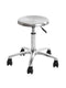 A refined stainless steel stool with a matte finish for professional salon use.