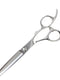 This is a new type of two-stage thinning shears with an ergonomically shaped three-dimensional handle and stepped blades that allow for easy cutting.