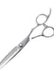 This thinning shear features an ergonomically shaped three-dimensional handle and a 40-tooth flat R blade that provides a good cutting feel.