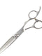 These thinning shears feature an ergonomic, three-dimensional handle, a flat blade tip, and an R-shaped blade for a smooth cut.