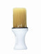 A convenient round-shaped brush designed to gently remove cut hair from the neck and shoulders. Its compact form makes it easy to place on a wagon or shelf without tipping.