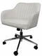 The seat is upholstered in soft PU leather, providing a comfortable and pleasant seating experience. Armrests are included for added support, enhancing overall comfort during longer sessions. The chair is equipped with a gas-lift height adjustment operated by a side lever, allowing smooth and easy positioning.